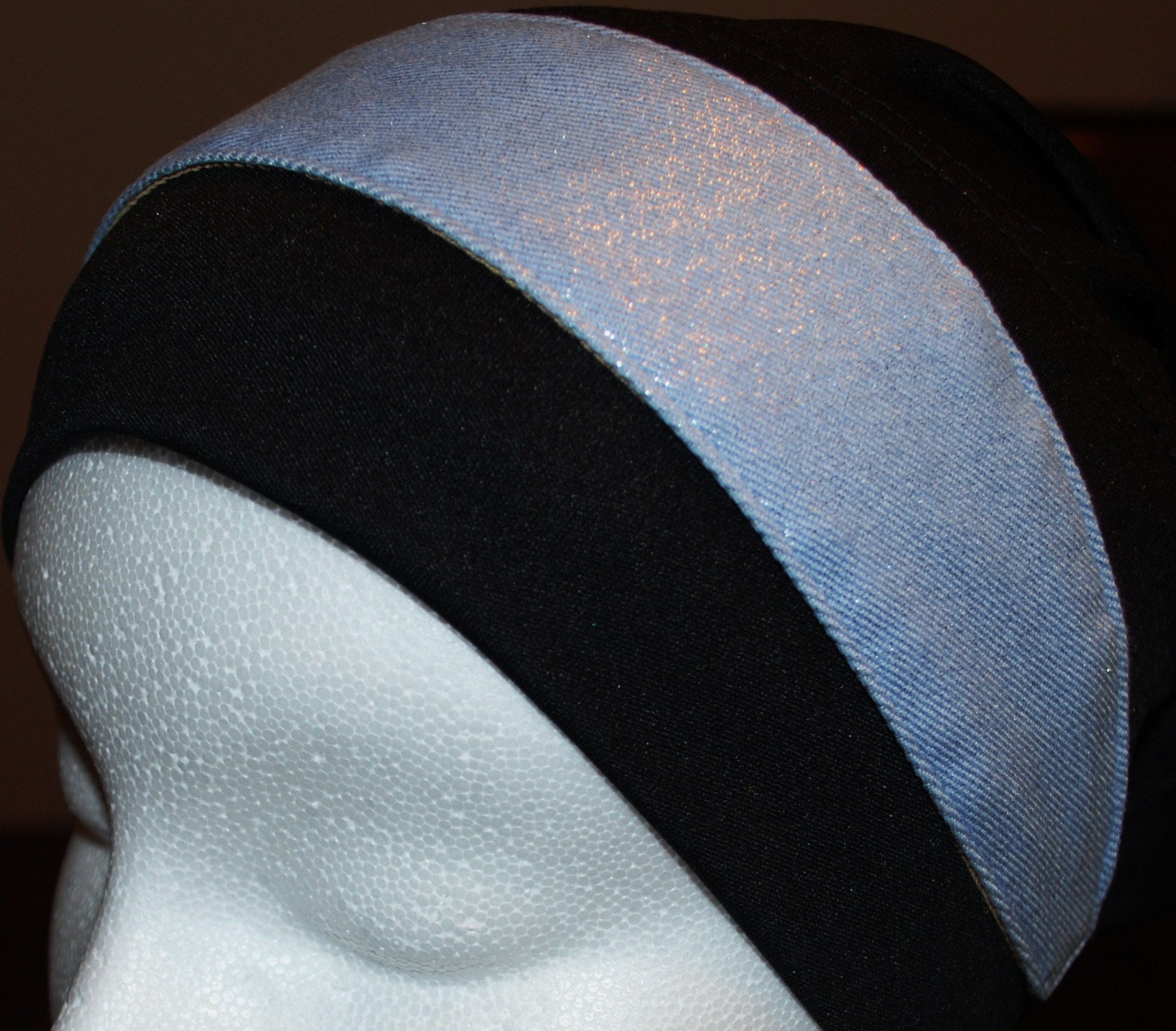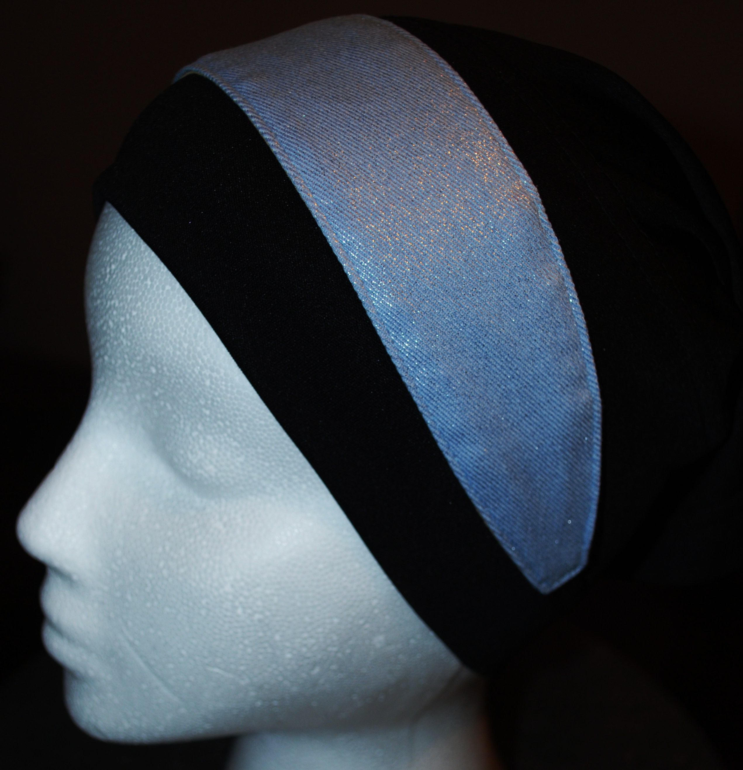 This stretchy accent head band is made of shimmery baby blue fabric. It can be worn on top of a hijab cap, hijab or even on your forhead to create several different looks!