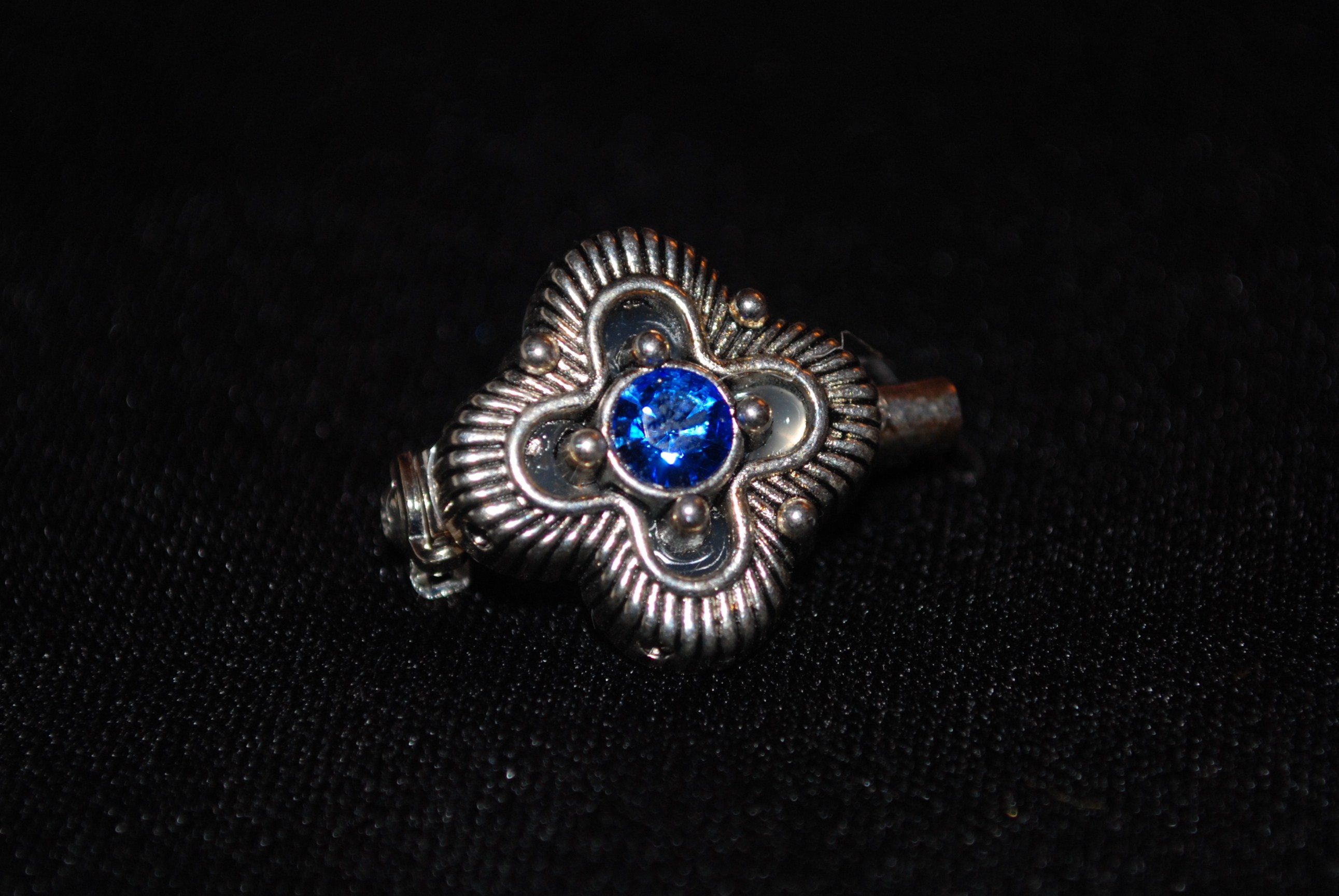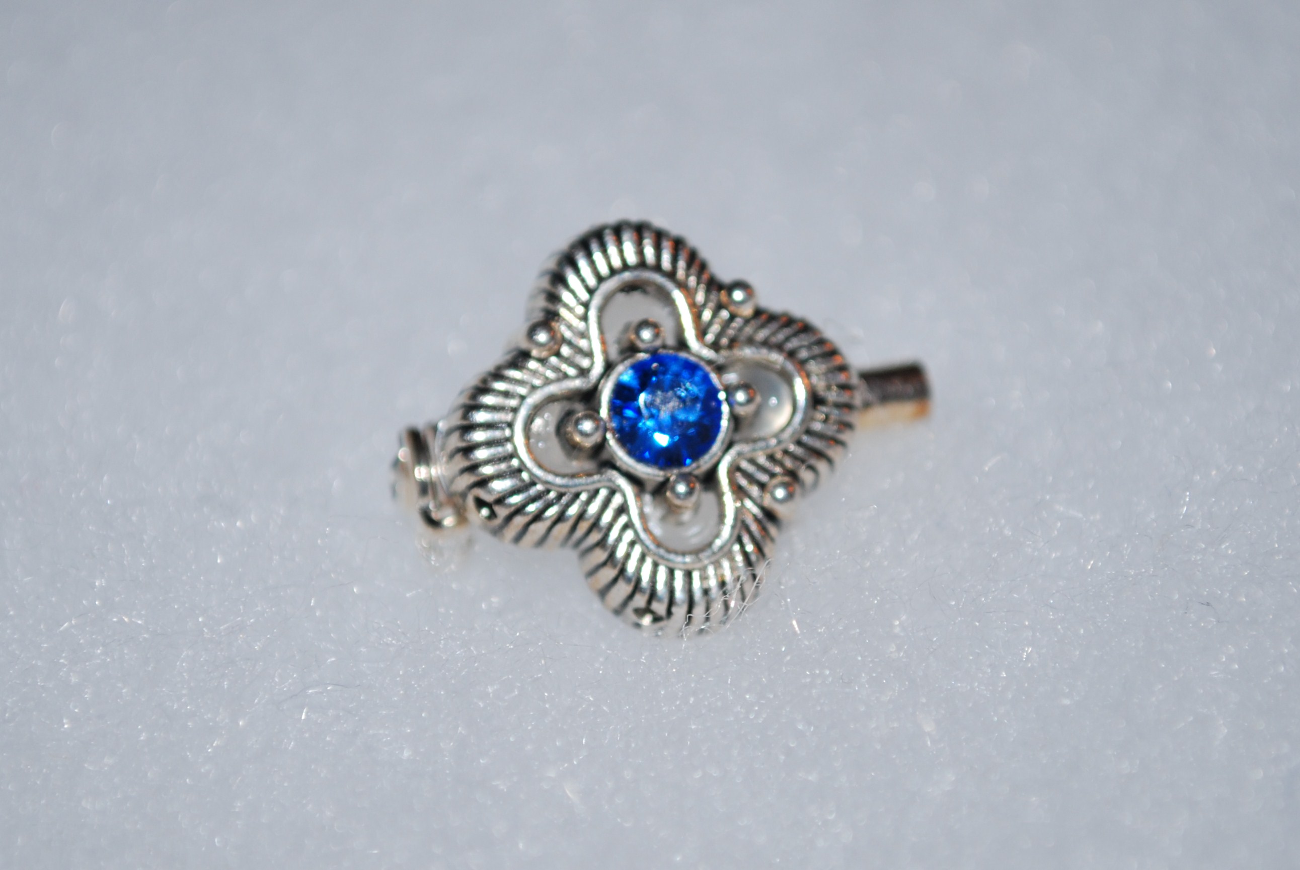 This Antique Silver hijab pin in blue is embellished with a cobalt blue stone inside it. Perfect to add a little something to your solid hijabs.