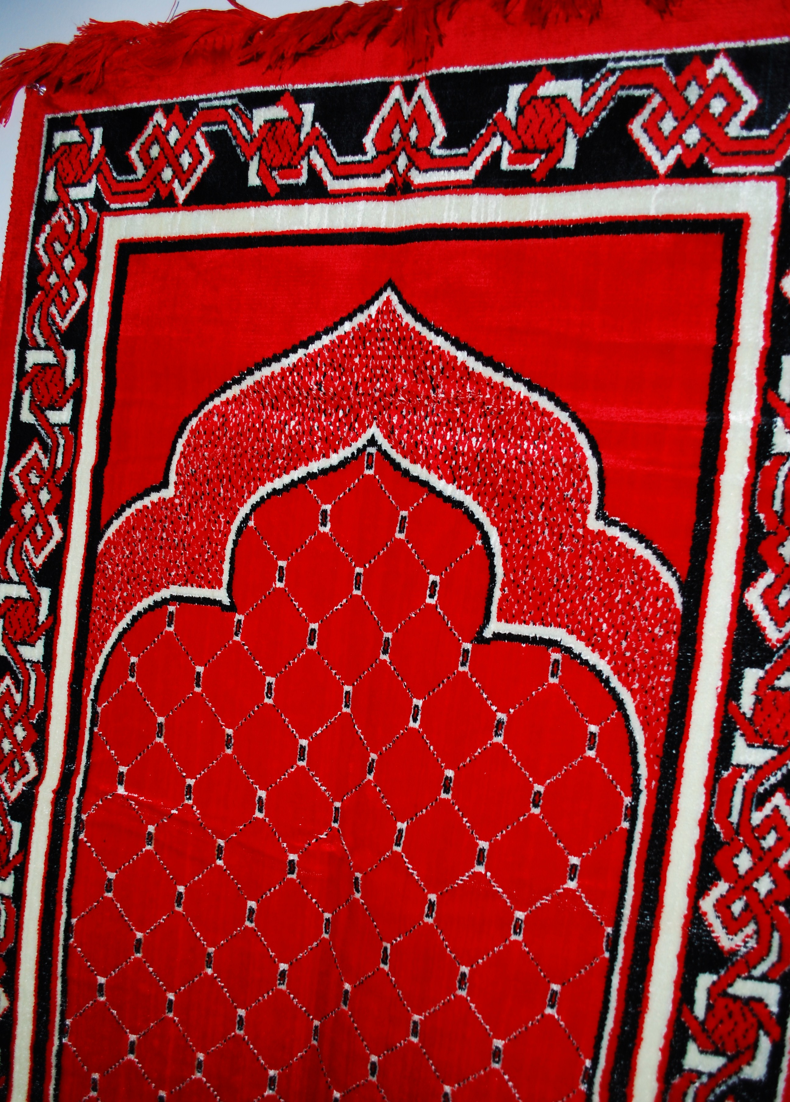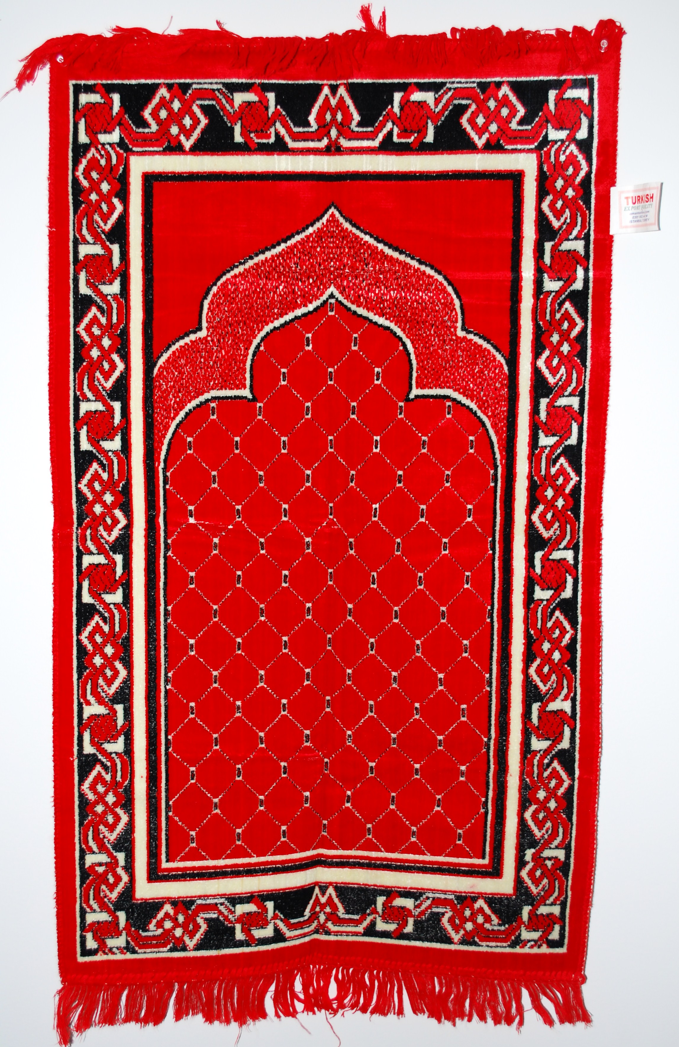 The Riyadh janamaz is a full size prayer rug with a beautiful woven pattern on it. The colors are rich and the material is soft.